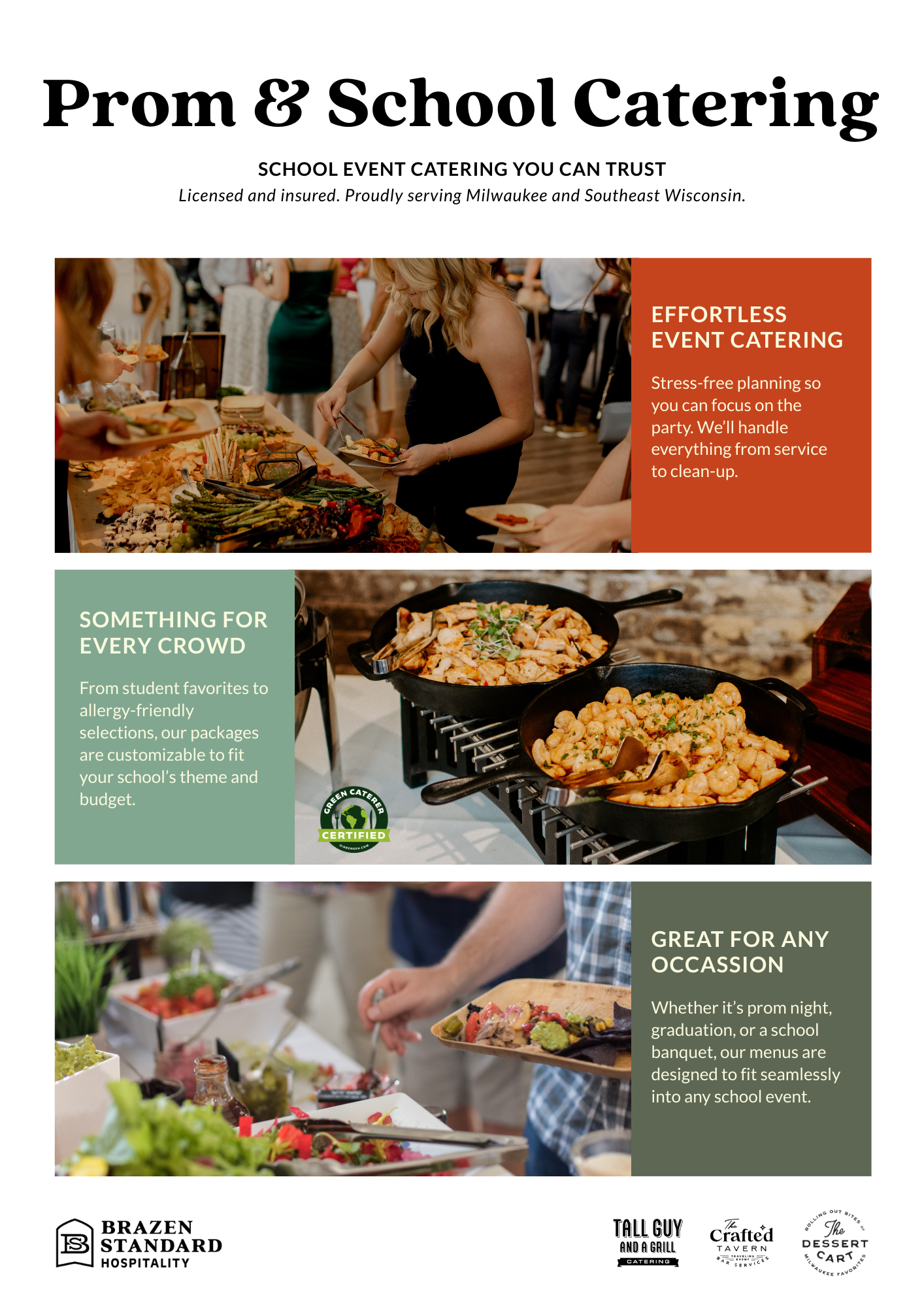 Prom, homecoming, and school fundraisers all come with a lot of moving parts. We make the food one less thing to worry about.