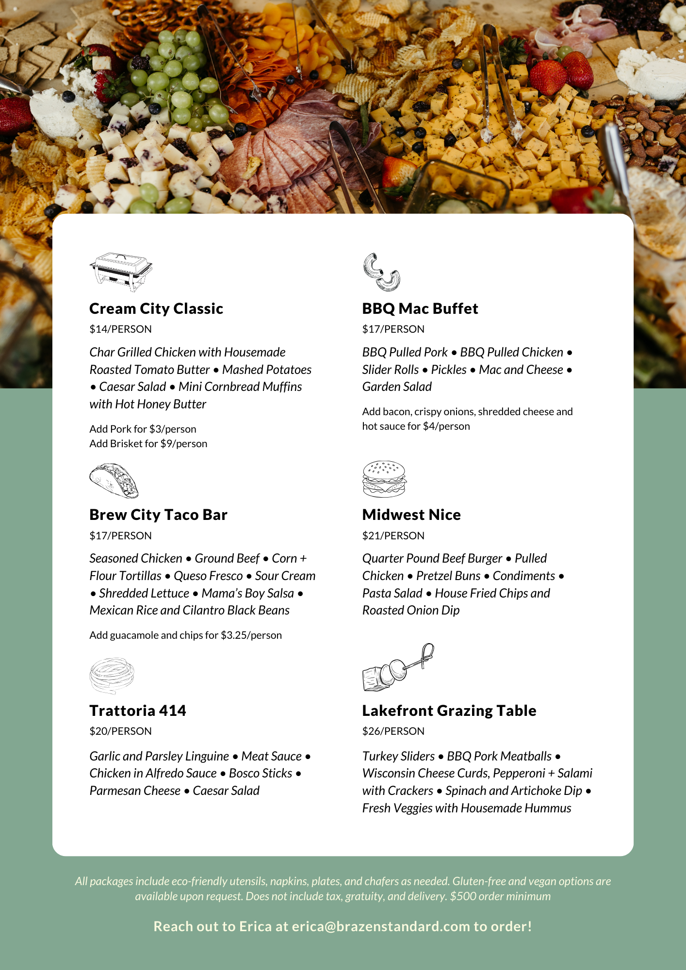 Our student-approved menu packages make planning that much easier. From crowd-pleasing classics to elevated favorites, plus vegetarian and allergy-aware options so everyone feels included.